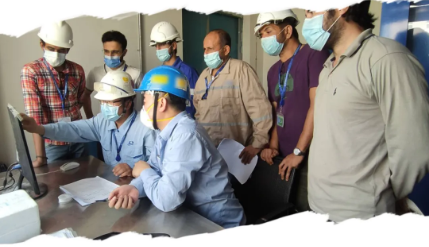 ▲用專(zhuān)業(yè)贏得信賴(lài),海外某項(xiàng)目現(xiàn)場(chǎng),制氫設(shè)備工程部員工加班加點(diǎn)開(kāi)展設(shè)備調(diào)試,指導(dǎo)工作人員熟悉設(shè)備操作。圖為技術(shù)人員現(xiàn)場(chǎng)開(kāi)展技術(shù)講解培訓(xùn)。