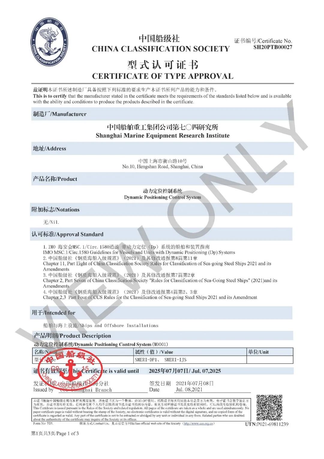 8月5日,中國船舶集團(tuán)七〇四所動力定位控制系統(tǒng)(DP系統(tǒng))獲中國船級社(CCS)授予的國產(chǎn)化型式認(rèn)可證書。該所成為國內(nèi)第一家滿足CCS2021年最新《鋼質(zhì)海船入級規(guī)范》要求的動力定位控制設(shè)備及系統(tǒng)供應(yīng)商。