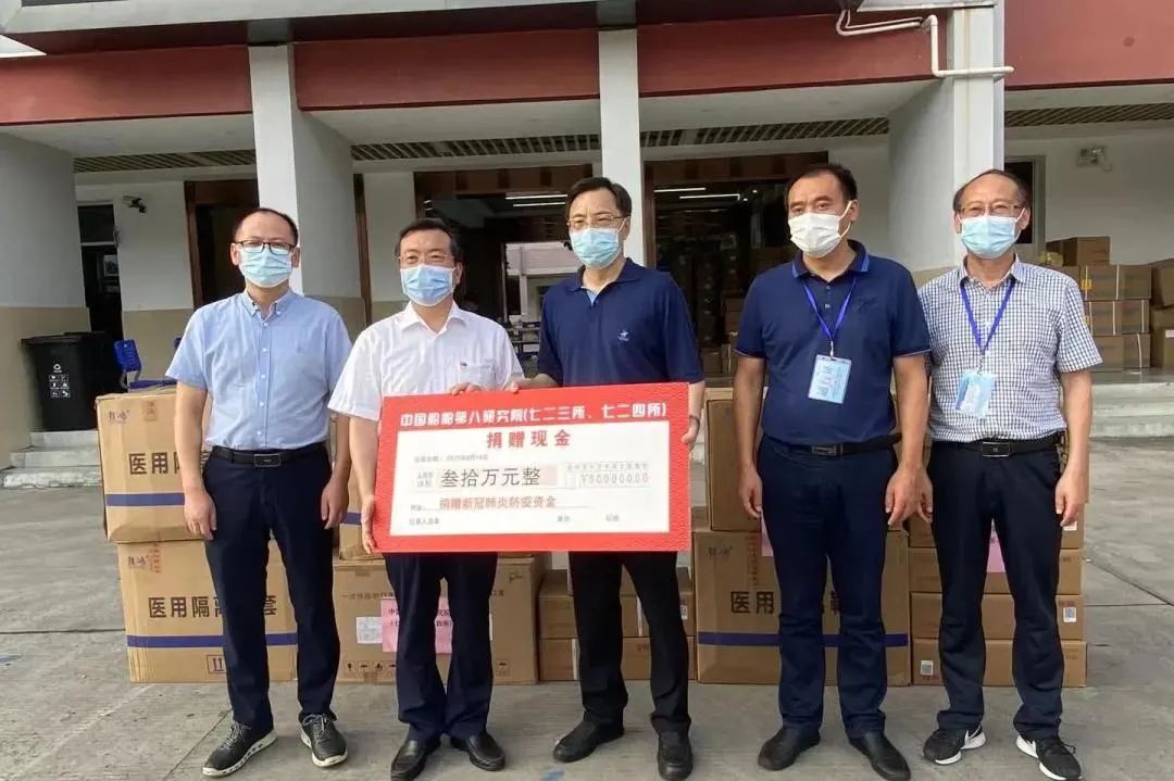 當(dāng)前,揚州疫情防控形勢依然嚴(yán)峻,抗擊疫情到了最關(guān)鍵的時刻。8月14日,中國船舶集團八院向揚州市捐贈30萬元現(xiàn)金、100萬只口罩和20萬元其他防疫物資支援揚州抗擊新冠肺炎疫情。