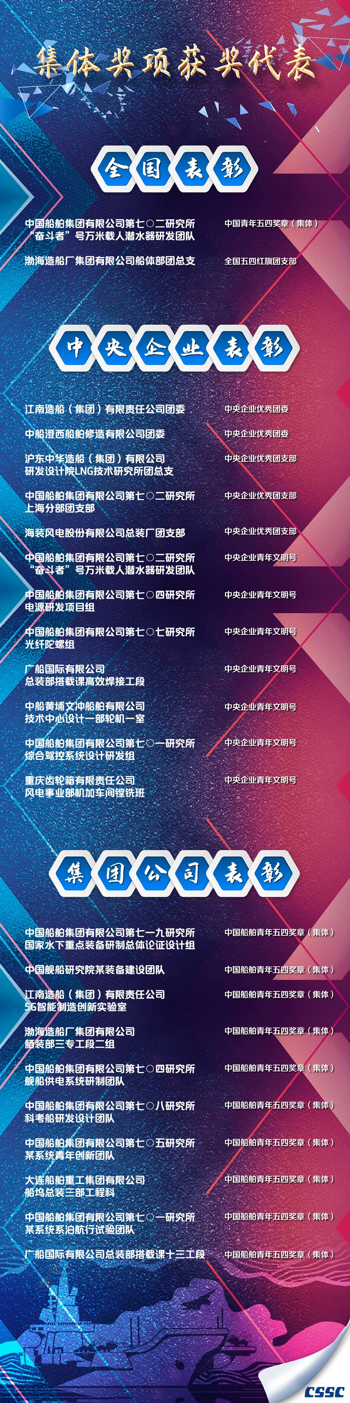 有的在生產(chǎn)一線不畏艱難、埋頭苦干,有的在服務(wù)集團(tuán)發(fā)展的最基層不計得失、任勞任怨。他們把個人理想融入世界一流船舶集團(tuán)的偉大事業(yè)中,書寫著新時代的青春答卷,彰顯著新時代青年的責(zé)任與擔(dān)當(dāng),為船舶青年作出了榜樣,樹立了標(biāo)桿。