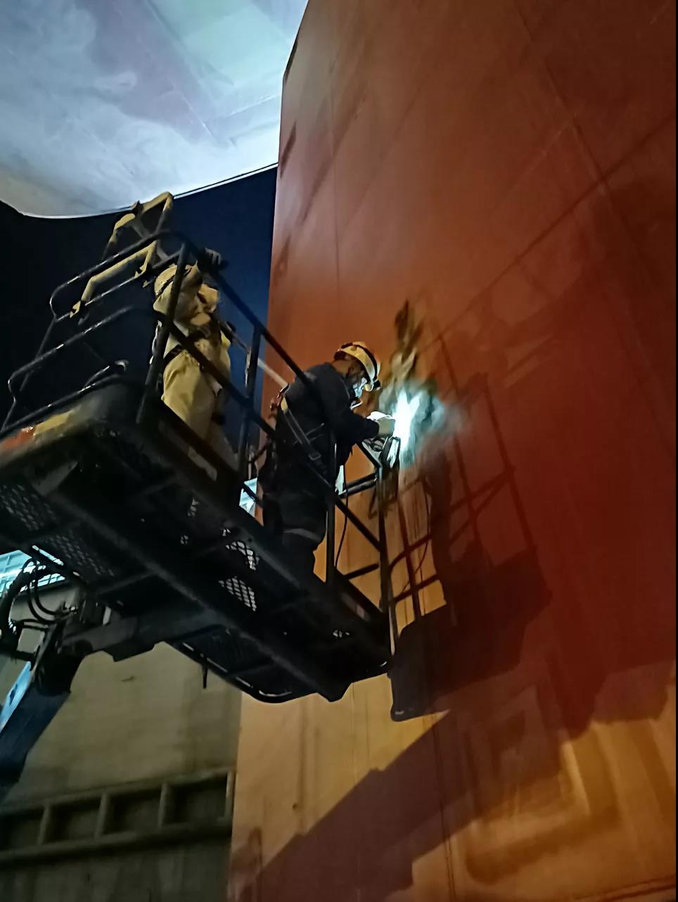 為保證出塢節(jié)點(diǎn),無損檢測人員在國慶節(jié)加班加點(diǎn)對(duì)舵葉封板焊縫磁粉檢測。