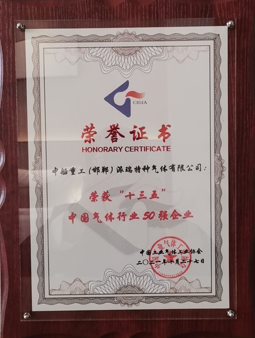 中國(guó)船舶集團(tuán)旗下七一八所所屬派瑞特氣公司,近日榮獲中國(guó)工業(yè)氣體工業(yè)協(xié)會(huì)評(píng)選的“十三五”中國(guó)氣體行業(yè)分行業(yè)電子氣體10強(qiáng)、“十三五”中國(guó)氣體行業(yè)50強(qiáng)企業(yè)榮譽(yù)稱號(hào),以及2021年氣體行業(yè)專利獎(jiǎng)金獎(jiǎng)。