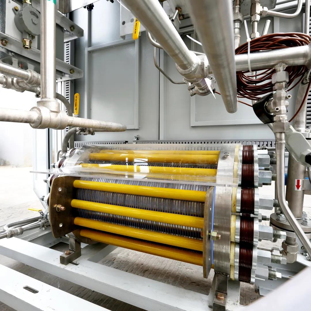 該設(shè)備為雙極壓濾式加壓水電解制氫裝置,能夠高效制取氫氣,能耗低、安全性能優(yōu)越,可年均節(jié)省電費(fèi)百萬(wàn)元。