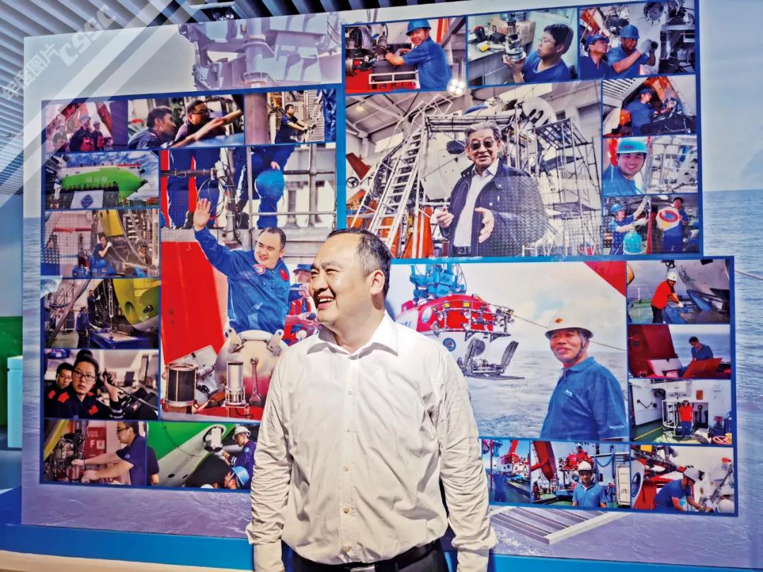 國(guó)企開(kāi)放日期間, “奮斗者”號(hào)總設(shè)計(jì)師葉聰帶領(lǐng)眾多央媒記者走進(jìn)中國(guó)船舶、深入船人一線,感受大國(guó)重器的張力!在展覽室的背景墻前,他縱然一笑,撒下江湖傳說(shuō)。