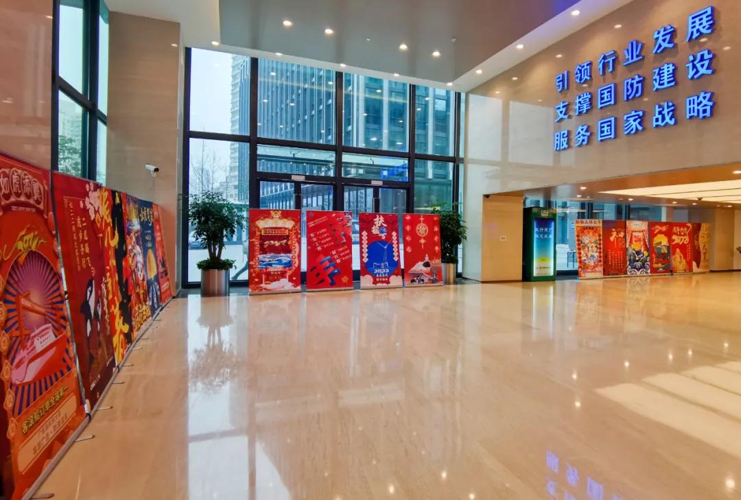 節(jié)日的煙花詮釋喜慶,大紅的燈籠點(diǎn)亮祝福!黃旭華院士作為七一九所典型人物代表,認(rèn)真注視著他為之奉獻(xiàn)一生的艇,也反映了這條戰(zhàn)線上科技工作者們“團(tuán)結(jié)、求實(shí)、創(chuàng)新、奉獻(xiàn)”的工作作風(fēng)。“為君一擊 鵬摶九天”暗藏“一九”二字,反映出七一九所肩負(fù)的責(zé)任之大,使命之重,表達(dá)了軍工人將船舶事業(yè)做大做強(qiáng)的決心。