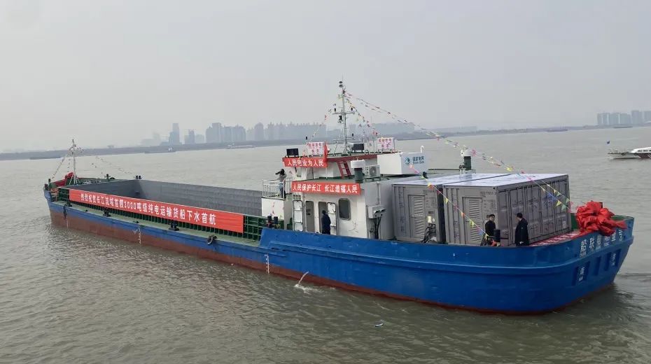 “船聯(lián)1號(hào)”由國(guó)網(wǎng)江蘇省電力有限公司聯(lián)合相關(guān)部門(mén)和企業(yè)共同打造,是長(zhǎng)江流域最大載重噸位的電動(dòng)貨船,將電能作為整艘船的唯一能源,實(shí)現(xiàn)零排放、低噪音、無(wú)污染。