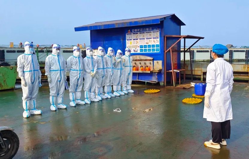 在每一艘船舶即將駛向交付目的地時,中船廣西防疫辦專門組織專業(yè)的醫(yī)護(hù)人員對參與送船的員工進(jìn)行防護(hù)培訓(xùn),并開展應(yīng)急演練,同時要求船舶靠岸時統(tǒng)一穿著防護(hù)服,無指令不得上岸。此外,該公司還安排專車對送船員工進(jìn)行點(diǎn)對點(diǎn)接送,杜絕一切與外界接觸的可能。
