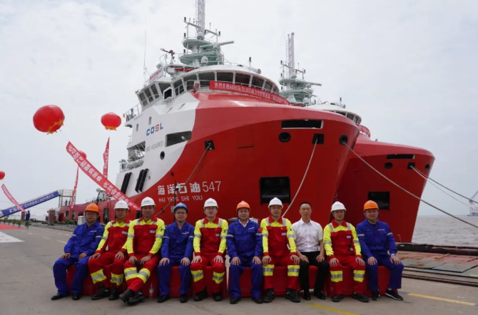 此次交付的“海洋石油542”和“海洋石油547”船是專門(mén)為我國(guó)海洋石油開(kāi)發(fā)提供支持服務(wù)的船舶,可為海上油氣開(kāi)發(fā)提供值班守護(hù)、貨物運(yùn)輸、救助以及對(duì)外消防等服務(wù)。該批船舶完全實(shí)現(xiàn)國(guó)內(nèi)設(shè)計(jì)、國(guó)內(nèi)建造,智能船舶系統(tǒng)、核心LNG儲(chǔ)罐及供氣系統(tǒng)、加注系統(tǒng)、主機(jī)、舵槳裝置均實(shí)現(xiàn)自主知識(shí)產(chǎn)權(quán)國(guó)產(chǎn)化,標(biāo)志著我國(guó)綠色化、智能化海工船設(shè)計(jì)、建造能力達(dá)到國(guó)際一流水平。