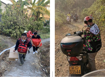 在重慶40多度的高溫天氣下,他們有的為當(dāng)?shù)鼐栀浀V泉水和食物等物資;有的加入挖隔離帶的隊伍中;有的在后方將物資運(yùn)送到統(tǒng)一堆放點(diǎn);山勢陡峭,有的則是成為“摩托幫”,將物資送到最前線。