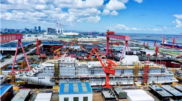 2019年10月18日,中國(guó)船舶集團(tuán)高質(zhì)量發(fā)展“一號(hào)工程”——中國(guó)首艘國(guó)產(chǎn)大型郵輪在外高橋造船正式開(kāi)工,全面進(jìn)入實(shí)質(zhì)性建造階段,標(biāo)志著中國(guó)船舶工業(yè)正式跨入大型郵輪建造新時(shí)代;2020年11月10日,迎來(lái)塢內(nèi)連續(xù)搭載總裝里程碑節(jié)點(diǎn),標(biāo)志著中國(guó)船舶工業(yè)在摘取“皇冠上最后一顆明珠”的征程上,又邁出了堅(jiān)實(shí)的一大步;2021年10月18日,如期實(shí)現(xiàn)全船貫通;12月17日,如期實(shí)現(xiàn)塢內(nèi)起浮,標(biāo)志著該工程從結(jié)構(gòu)和舾裝建造的“上半場(chǎng)”全面轉(zhuǎn)入內(nèi)裝和系統(tǒng)完工調(diào)試的“深水區(qū)”。2022年8月8日,第二艘國(guó)產(chǎn)大型郵輪正式開(kāi)工建造,大型郵輪邁入“雙輪”建造時(shí)代,標(biāo)志著中國(guó)船舶工業(yè)已初步掌握大型郵輪設(shè)計(jì)建造關(guān)鍵核心技術(shù),實(shí)現(xiàn)批量化、系列化建造指日可待。備受?chē)?guó)內(nèi)外關(guān)注的首艘國(guó)產(chǎn)大型郵輪目前已全面進(jìn)入內(nèi)部裝潢和設(shè)備(系統(tǒng))調(diào)試關(guān)鍵階段,朝著最終的命名交付里程碑節(jié)點(diǎn)穩(wěn)步邁進(jìn)。