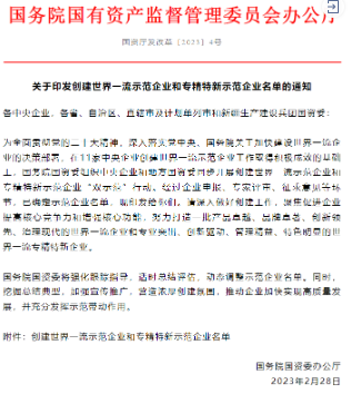 創(chuàng)建世界一流專(zhuān)精特新示范企業(yè)是國(guó)務(wù)院國(guó)資委貫徹黨中央、國(guó)務(wù)院關(guān)于加快建設(shè)世界一流企業(yè)決策部署,深化創(chuàng)建示范、管理提升、價(jià)值創(chuàng)造、品牌引領(lǐng)“四個(gè)專(zhuān)項(xiàng)行動(dòng)”的重要內(nèi)容,目的在于加快建設(shè)一批培育一批“專(zhuān)精特新”“小巨人”和單項(xiàng)冠軍企業(yè),在不同領(lǐng)域形成百家以上不同層級(jí)的典型示范企業(yè)。