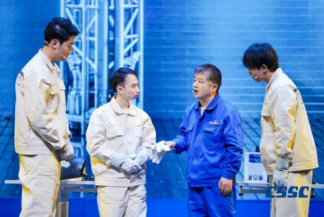 現(xiàn)場(chǎng),來(lái)自中國(guó)船船集團(tuán)江南造船(集團(tuán))有限責(zé)任公司、滬東中華造船(集團(tuán))有限公司、上海外高橋造船有限公司、中船動(dòng)力(集團(tuán))有限公司和中國(guó)船舶集團(tuán)公司第七〇二研究所的青年職工將真實(shí)工作案例與理論原文結(jié)合,將“發(fā)展新質(zhì)生產(chǎn)力”作為工作方向與指引,將他們的造船故事親身演繹。故事從《船舶青年說(shuō)》起航,共講述了五大篇章,分別為江南造船如何延續(xù)百年初心、滬東中華造船LNG船毫厘鑄匠心、七〇二所從“蛟龍”號(hào)到“奮斗者”號(hào)將深潛進(jìn)行到底、外高橋造船“愛(ài)達(dá)?魔都號(hào)”大型郵輪“4個(gè)120天”的極限挑戰(zhàn)、江南造船“鋼鐵心臟”工程師攻克大型作戰(zhàn)艦建造的不凡創(chuàng)新路,臺(tái)詞鏗鏘有力、情感真摯流淌,繪就了一幅精彩的中國(guó)船舶夢(mèng)畫(huà)卷。