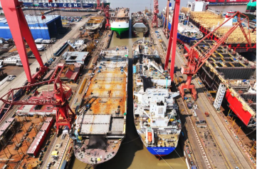 8月11日,中國船舶集團(tuán)旗下江南造船4號(hào)船塢迎來一艘99000立方米超大型乙烷乙烯運(yùn)輸船(VLEC)和一艘7800車位汽車運(yùn)輸船(PCTC)出塢 ,一艘99000立方米VLEC半船和一艘7800車位PCTC半船同步起浮,達(dá)成了“PV同步”建造模式的首批次出塢。