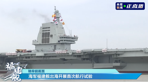 這其實是我國第三艘航空母艦福建艦2024年5月1日從上海江南造船廠碼頭解纜啟航,赴相關(guān)海域,開展首次航行試驗的畫面。