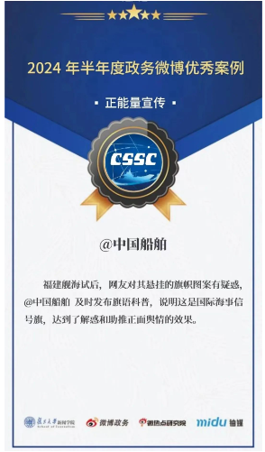 另外,日前2024上半年度政務(wù)微博影響力報告正式公布,@中國船舶獲評“全國十大國資央企微博”。@中國船舶通過創(chuàng)新傳播形式,讓權(quán)威性信息觸達(dá)民眾,提供高效高質(zhì)的資訊和服務(wù),為助力集團(tuán)公司高質(zhì)量發(fā)展注入動能。