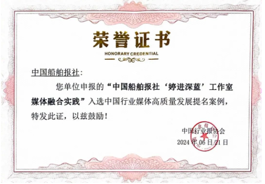 中國船舶報社“婷進(jìn)深藍(lán)”工作室,媒體融合實踐獲評中國行業(yè)媒體高質(zhì)量發(fā)展提名案例。