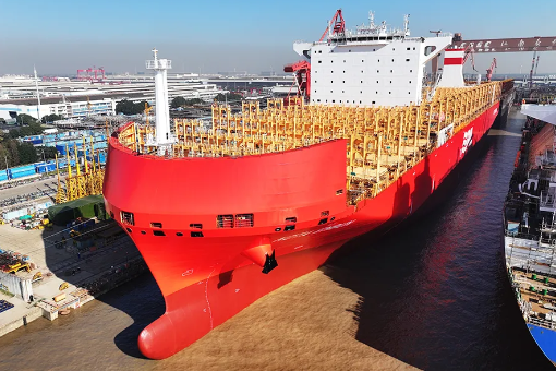 12月2日,中國船舶集團旗下江南造船三號船塢迎來一艘整船出塢,一艘整船、兩艘半船同步起浮多個生產(chǎn)節(jié)點。該批次出塢是2024年度三號船塢的最后一批次出塢。