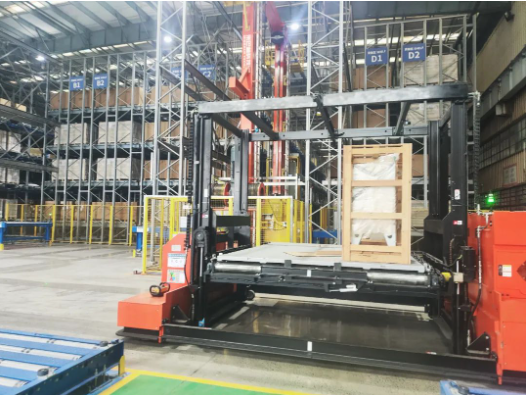 該系統(tǒng)單托盤舉升能力達到6噸,適用于各類大、重、分布不均、形狀各異物資的立體存儲。采用業(yè)內(nèi)首創(chuàng)的駛入式自動導向車作為移載動力,通過自主研發(fā)的重型堆垛裝備與智能控制系統(tǒng)聯(lián)動,能夠在復雜的立體倉庫環(huán)境中準確定位目標并快速平穩(wěn)完成作業(yè)任務。同時,通過引入現(xiàn)代物聯(lián)網(wǎng)和數(shù)字孿生等先進技術,實現(xiàn)了倉儲物流的智能可視化運營。