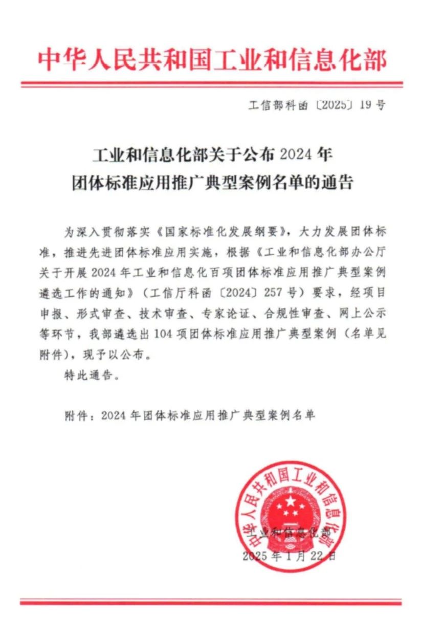 目前,集團公司已連續(xù)六年入選工信部團體標(biāo)準(zhǔn)應(yīng)用推廣典型案例。