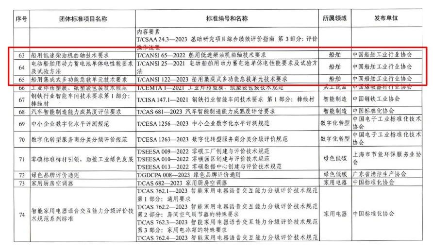 近日,根據(jù)《工業(yè)和信息化部關(guān)于公布2024年團體標(biāo)準(zhǔn)應(yīng)用推廣典型案例名單的通告》,中船集團主導(dǎo)的三項船舶行業(yè)團體標(biāo)準(zhǔn)入選,分別為: