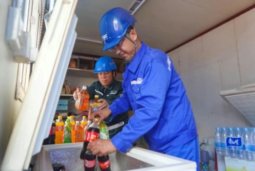 在飲食消暑保障上,大船天津構(gòu)建起全鏈條清涼補(bǔ)給體系。清涼解暑的綠豆湯成為員工餐桌上的“標(biāo)配”,供隨餐飲用;4000余箱瓶裝水以及大批藿香正氣水作為夏季防暑降溫物資配送至各部門、各協(xié)作單位班組;作業(yè)現(xiàn)場的冰柜里,清涼飲品隨時待取;為協(xié)作單位員工送上遮陽草帽,讓清涼關(guān)懷覆蓋每一位一線勞動者。