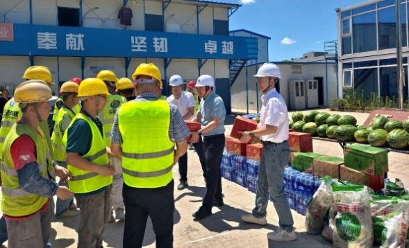 中船國(guó)際工程在項(xiàng)目現(xiàn)場(chǎng)開(kāi)展綜合檢查工作,并向堅(jiān)守崗位的項(xiàng)目員工及勞務(wù)隊(duì)伍送上防暑降溫物資,叮囑大家要科學(xué)合理安排作業(yè)時(shí)間,切實(shí)做好防暑降溫措施。