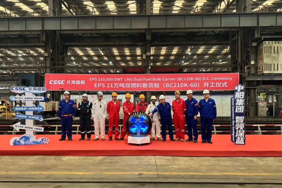 北海造船承建的新加坡EPS公司21萬噸液化天然氣(LNG)雙燃料動(dòng)力散貨船項(xiàng)目60號(hào)船和比利時(shí)CMB.TECH公司21萬噸散貨船項(xiàng)目79號(hào)船順利開工。60號(hào)船是該系列船舶中的第4艘,79號(hào)船是北海造船為該船東建造的第27艘同型船。