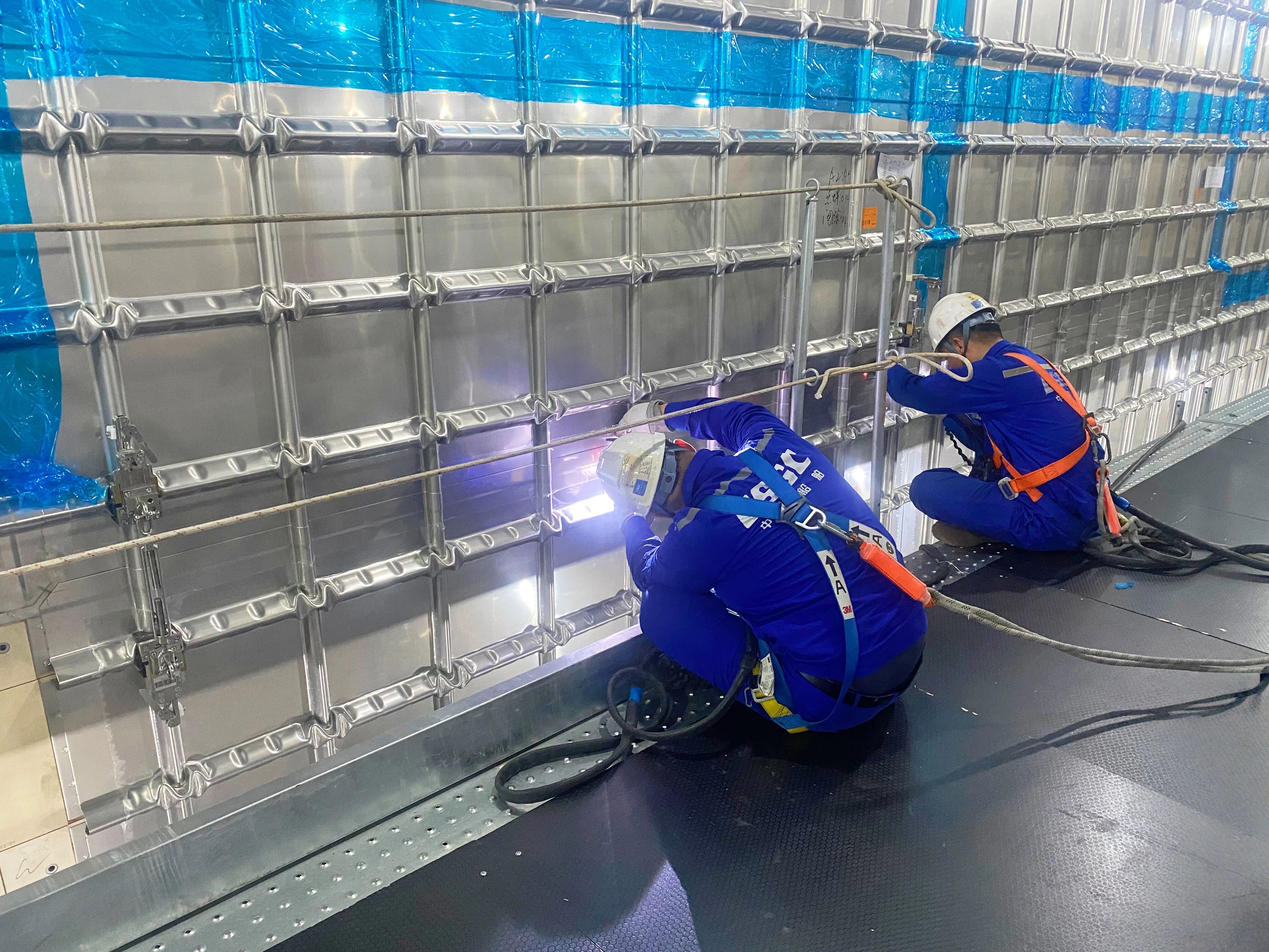 在大連,工程公司一工廠船體作業(yè)區(qū)產(chǎn)能同比提升30%;LNG項(xiàng)目組成功解決了薄板焊接變形、焊縫成形不均等技術(shù)瓶頸,并順利交付兩個(gè)液貨艙的貨圍階段氨氣試驗(yàn)施工任務(wù),質(zhì)量檢測(cè)結(jié)果超行業(yè)第一梯隊(duì)平均水平。