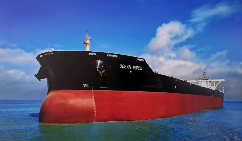 搭載七一一所軸帶發(fā)電系統(tǒng)和前置預旋導輪、消渦鰭、舵球、螺旋槳改型等節(jié)能裝置的23萬噸散貨船在航行中
