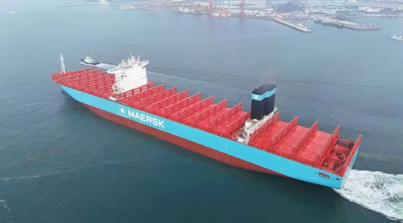 搭載七一一所全球首個營運船改造最大功率的4.5兆瓦分半式中壓軸帶發(fā)電系統(tǒng)的10600TEU集裝箱船啟航出發(fā)
