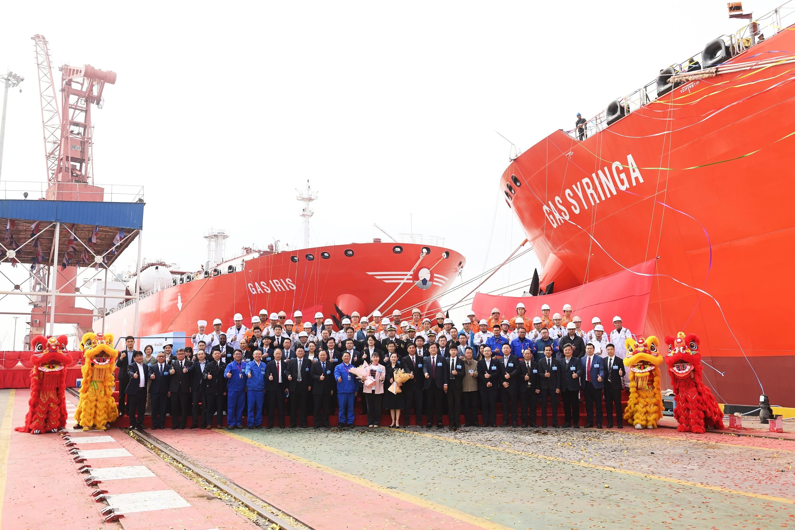 3月26日,中國船舶集團有限公司旗下江南造船為西南海運建造的2艘99000立方米超大型乙烷運輸船(VLEC)“GAS IRIS”號和“GAS SYRINGA”號同日命名,其中“GAS IRIS”號還于當(dāng)日簽字交付。