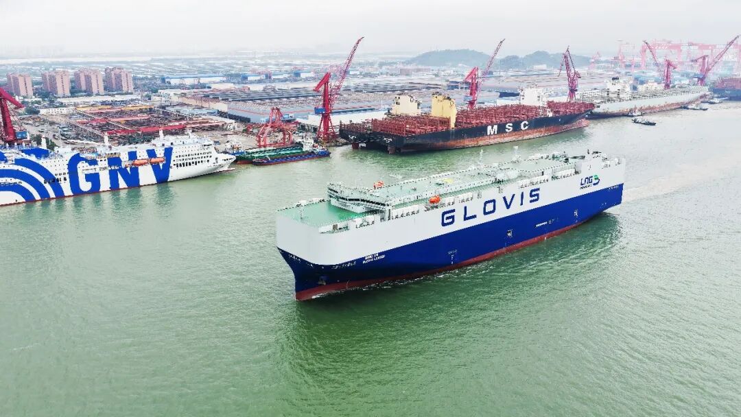 10800車LNG雙燃料汽車運(yùn)輸船1號(hào)船離開碼頭