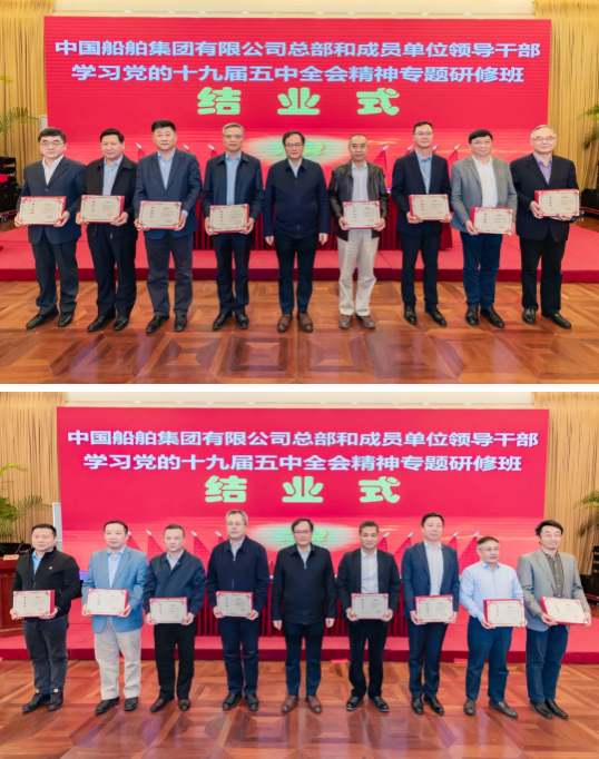 4月23日,中國船舶集團有限公司總部和成員單位領(lǐng)導(dǎo)干部學(xué)習(xí)黨的十九屆五中全會精神和黨史學(xué)習(xí)教育專題研修班圓滿結(jié)業(yè)。培訓(xùn)期間,中國船舶集團黨組書記、董事長雷凡培以《深入貫徹落實習(xí)近平總書記重要指示批示精神 努力加快建設(shè)世界一流船舶集團》為題給全體學(xué)員們講授了第一課,中國船舶集團黨組副書記、總經(jīng)理楊金成,黨組成員、副總經(jīng)理孫偉、盛紀(jì)綱以及相關(guān)部門負(fù)責(zé)人先后出席各期結(jié)業(yè)式并聽取了學(xué)員們的學(xué)習(xí)匯報。