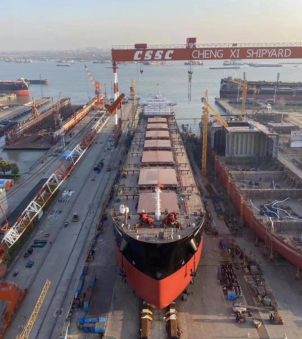 ????4月7日,中國船舶集團(tuán)旗下中船澄西為香港華光船務(wù)建造的42號8.2萬噸散貨船,在中船澄西揚(yáng)州公司下水。該船下水整體完整性較好,船體工程、輪機(jī)工程、電氣工程等多項工程基本完工,為水下全船設(shè)備安裝調(diào)試打下了堅實(shí)基礎(chǔ)。