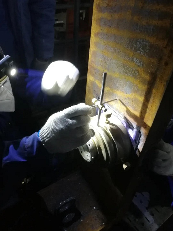 為確保VLCC照光工作順利完成,大船集團輪機工藝小組,提前一周就進入“作戰(zhàn)”狀態(tài),他們每天堅持深入現(xiàn)場,從細小處入手,檢查每一個可能影響軸舵系施工質量的隱患,加班加點成了工作的常態(tài)。