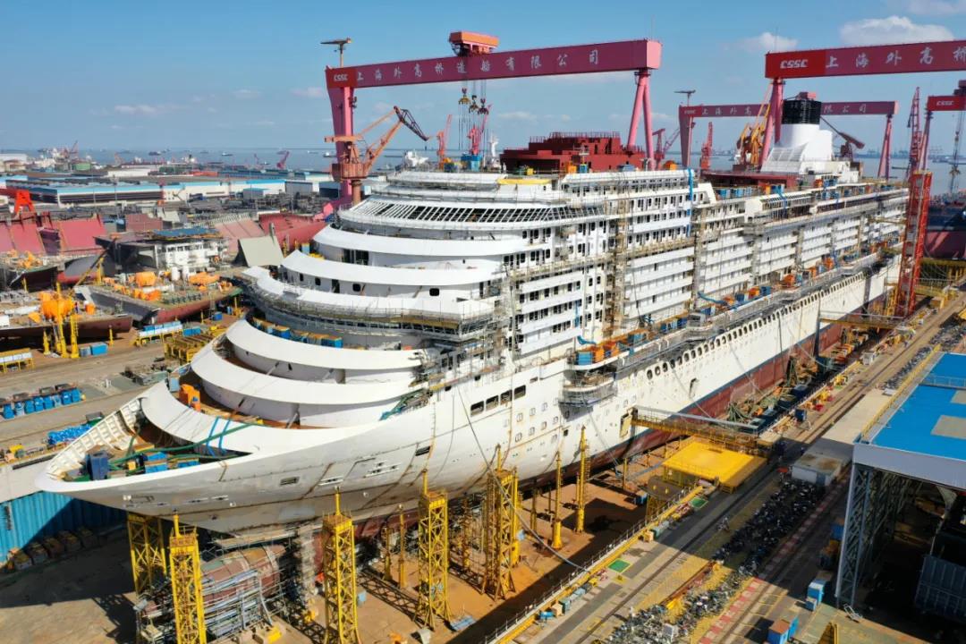 9月17日,中國船舶集團旗下外高橋造船建造的國產(chǎn)首制大型郵輪最后一個總段L4吊裝搭載,標志著全船總段制作暨搭載順利完工。