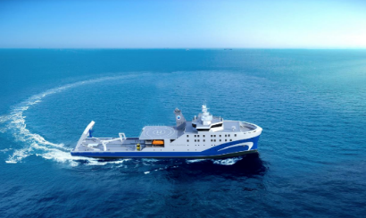 該船總長(zhǎng)110.8米,型寬20.0米,排水量約7000噸,設(shè)計(jì)航速15節(jié),續(xù)航力10000海里,定員80人,具備無限航區(qū)全球航行能力。