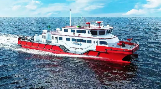 3月18日,中國澳門海關(guān)消防救援船在梧州舉行開工儀式。該項(xiàng)目由中國船舶集團(tuán)廣州公司下屬澳門公司承接,中船廣西下屬桂船公司建造,七〇一所下屬武漢船舶設(shè)計(jì)研究院設(shè)計(jì),采用雙體穿浪船型,全鋁合金焊接結(jié)構(gòu)。