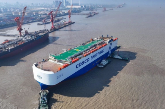 12月2日,外高橋造船1號船塢迎來8600車液化天然氣(LNG)雙燃料動力汽車運(yùn)輸船(PCTC)和11.4萬噸阿芙拉型成品油輪的同日出塢,不僅達(dá)成首制PCTC船塢周期100天既定目標(biāo),在民船建造領(lǐng)域繼續(xù)保持“加速度”,而且也標(biāo)志著該公司新船型和常規(guī)船型同塢同節(jié)拍生產(chǎn)取得新突破。