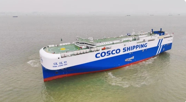 4月21日,中船集團(tuán)旗下廣船國(guó)際聯(lián)合中船貿(mào)易建造的7000車(chē)液化天然氣(LNG)雙燃料動(dòng)力汽車(chē)運(yùn)輸船“漢江口”號(hào)舉行命名交船儀式。據(jù)了解,該船交付后,首航次將從上海裝載國(guó)產(chǎn)汽車(chē)奔赴智利、秘魯、危地馬拉等國(guó)家。