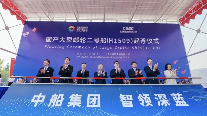 4月28日,第二艘國(guó)產(chǎn)大型郵輪“愛(ài)達(dá)·花城號(hào)”起浮儀式在中國(guó)船舶集團(tuán)有限公司旗下外高橋造船舉行。中船集團(tuán)黨組副書(shū)記、董事、總經(jīng)理王國(guó)強(qiáng)出席儀式并致辭。工信部裝備工業(yè)二司司長(zhǎng)徐春榮,中旅集團(tuán)黨委副書(shū)記、總經(jīng)理范云軍出席儀式并致辭。文旅部產(chǎn)業(yè)發(fā)展司副司長(zhǎng)馬力,中船集團(tuán)黨組成員、副總經(jīng)理胡賢甫,中旅集團(tuán)黨委副書(shū)記、董事石善博,上海市經(jīng)濟(jì)和信息化委員會(huì)副主任蒲亞鵬,浦東新區(qū)副區(qū)長(zhǎng)李慧出席儀式。