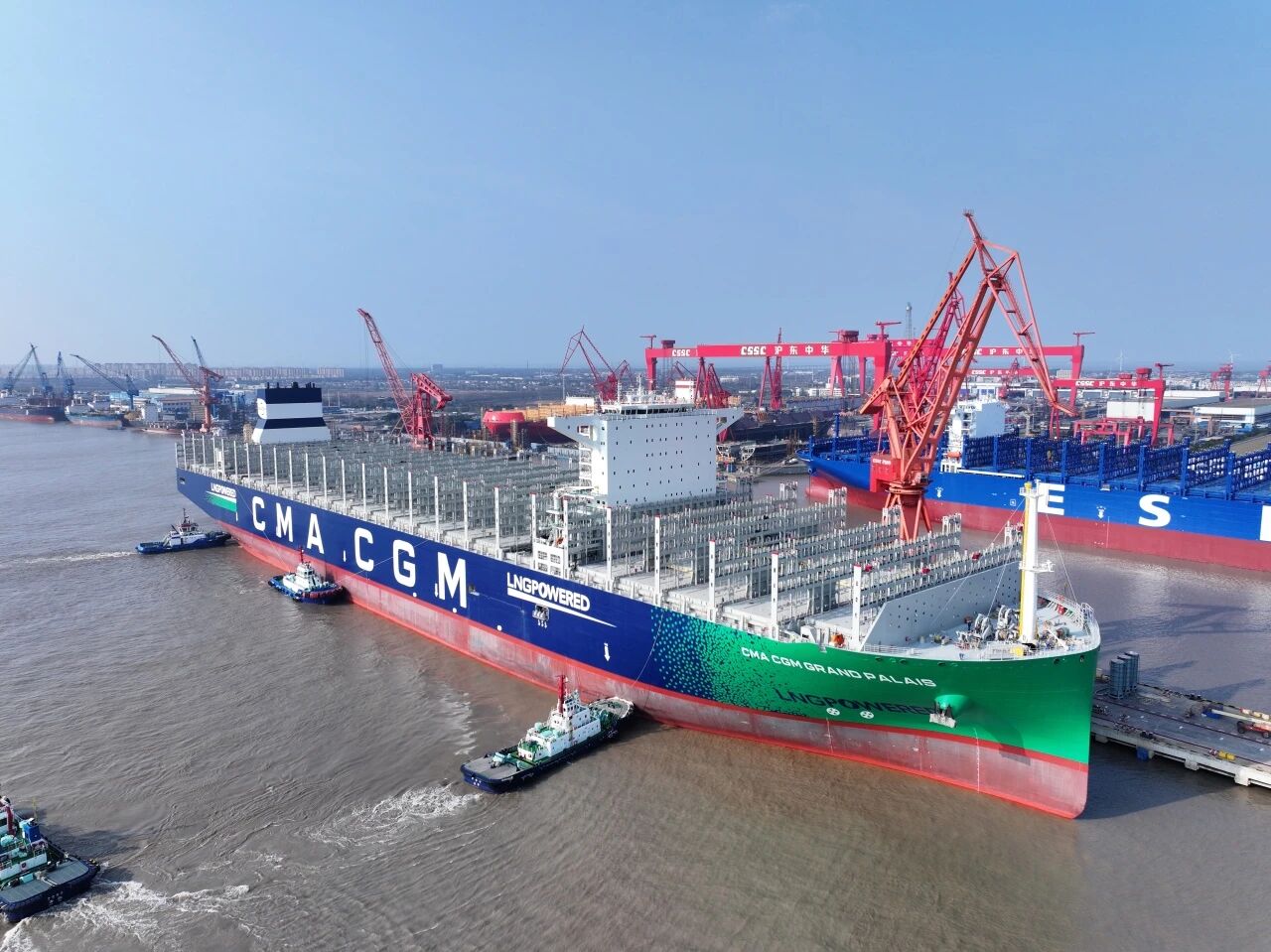 3月17日,中船集團(tuán)旗下滬東中華建造的24000TEU液化天然氣(LNG)雙燃料動力集裝箱船“達(dá)飛 巴黎大皇宮”號,提前7個半月命名交付。該船是滬東中華為法國達(dá)飛集團(tuán)建造的第20艘大型集裝箱船,為中法兩國在綠色航運與高端制造領(lǐng)域的深度合作增添新的典范。
