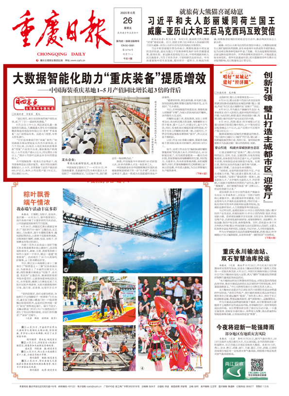 近日,重慶日?qǐng)?bào)頭版頭條以《大數(shù)據(jù)智能化助力“重慶裝備”提質(zhì)增效——中國海裝重慶基地1-5月產(chǎn)值同比增長(zhǎng)超3倍的背后》,為題對(duì)中國船舶集團(tuán)旗下中國海裝進(jìn)行了報(bào)道,文章對(duì)后疫情時(shí)代,中國海裝如何履行央企責(zé)任,做好“六穩(wěn)”工作,落實(shí)“六保”任務(wù),助力重慶裝備制造業(yè)穩(wěn)步復(fù)蘇,奮力實(shí)現(xiàn)高質(zhì)量發(fā)展的舉措與成效進(jìn)行了深入分析。