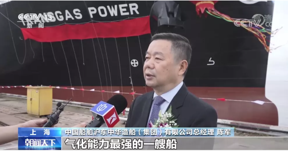滬東中華總經(jīng)理陳軍:這艘船是我們中國第一次新建的FSRU(再氣化)項(xiàng)目,同時也是目前單個FSRU(再氣化)裝置方面氣化能力最強(qiáng)的一艘船。