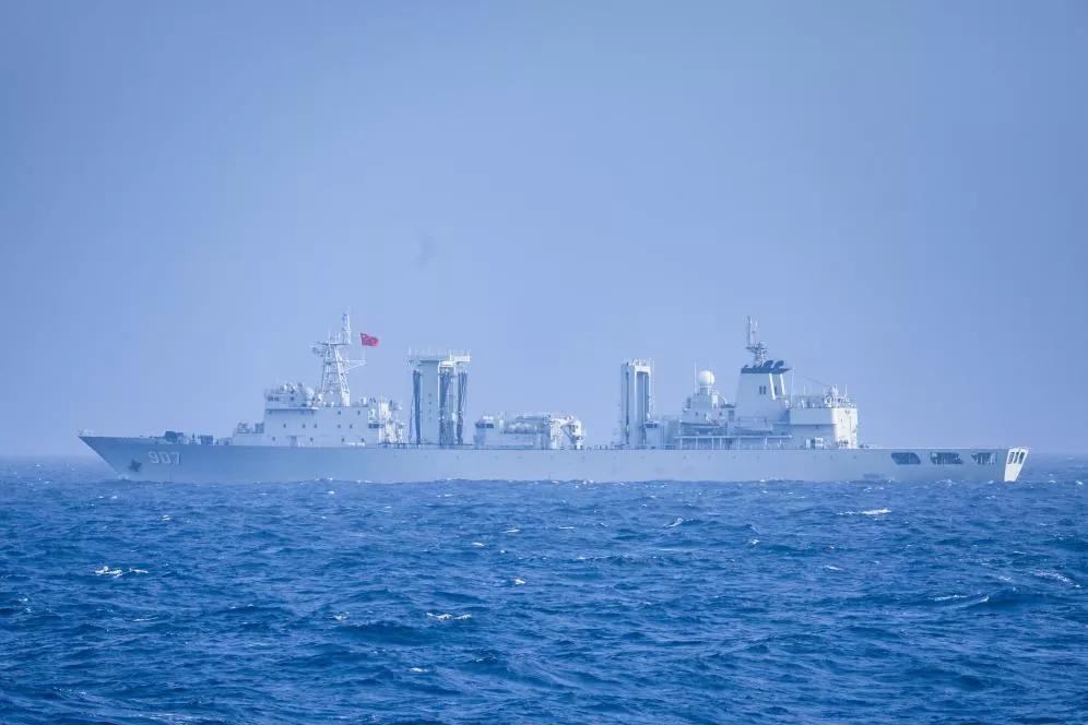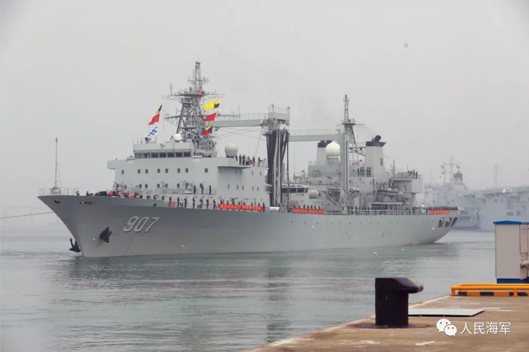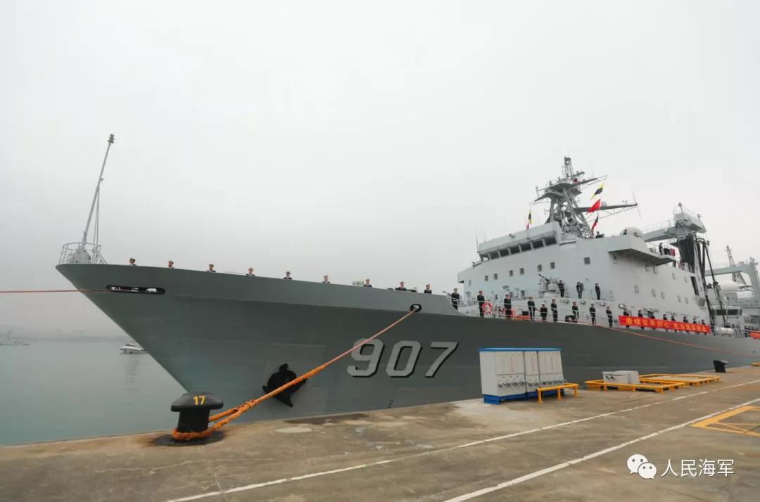 綜合補(bǔ)給艦駱馬湖艦,舷號(hào)907,是我國(guó)自行設(shè)計(jì)制造的新型遠(yuǎn)洋綜合補(bǔ)給艦,由中國(guó)船舶集團(tuán)七〇八所設(shè)計(jì)、滬東中華建造。該艦具備橫向、縱向、立體補(bǔ)給能力,可同時(shí)對(duì)多艘不同類(lèi)型艦艇進(jìn)行補(bǔ)給,具有較強(qiáng)的遠(yuǎn)洋綜合補(bǔ)給能力。入列以來(lái),曾執(zhí)行過(guò)第31批護(hù)航等多項(xiàng)重大任務(wù)。