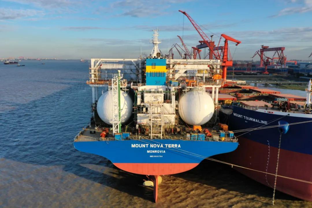 1月28日,中國船舶集團(tuán)旗下外高橋造船自主研發(fā),攜手中船貿(mào)易,為新加坡EPS公司建造的全球首艘液化天然氣(LNG)雙燃料動(dòng)力20.9萬載重噸紐卡斯?fàn)栃蜕⒇洿?