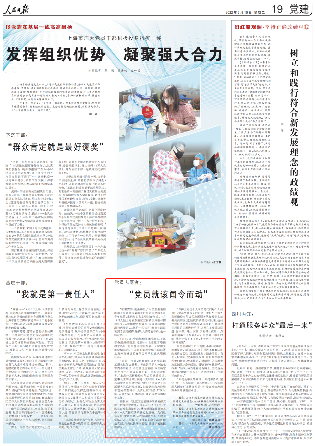 一個支部一座堡壘,一個黨員一面旗幟。哪里有急難險重任務,哪里就有黨員的擔當、就有組織的力量。充分發(fā)揮黨的組織優(yōu)勢,凝聚強大合力,就“一定能夠打贏大上海保衛(wèi)戰(zhàn)”。