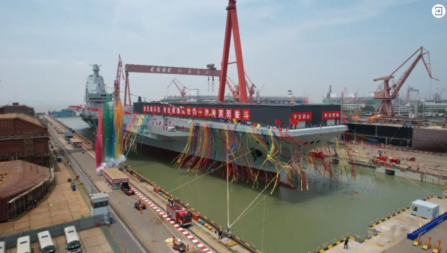 2022年6月17日,我國第三艘航空母艦下水命名儀式在中國船舶集團有限公司江南造船廠舉行。經中央軍委批準,我國第三艘航空母艦命名為“中國人民解放軍海軍福建艦”,舷號為“18”。福建艦是我國完全自主設計建造的首艘彈射型航空母艦,采用平直通長飛行甲板,配置電磁彈射和阻攔裝置,滿載排水量8萬余噸。該艦下水后,將按計劃開展系泊試驗和航行試驗。福建艦順利下水標志著我國海軍裝備現(xiàn)代化建設取得了又一重大的歷史性突破,對于進一步提升我國海軍維護國家海洋權益的能力具有重要意義。