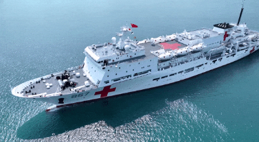 “絲路方舟”號醫(yī)院船羅吉星介紹:“作為一艘醫(yī)院船,它具備靈活的機(jī)動能力,能夠在災(zāi)害發(fā)生第一時間迅速抵達(dá)災(zāi)害地區(qū),提供醫(yī)療援助服務(wù),還具備多種換乘能力和轉(zhuǎn)移手段,在不具備靠泊條件的災(zāi)害地區(qū)可以通過直升機(jī)和救護(hù)艇,將醫(yī)護(hù)人員和醫(yī)療物資轉(zhuǎn)運(yùn)上岸,或者通過同樣的方式將我們傷病員轉(zhuǎn)運(yùn)至醫(yī)院船進(jìn)行醫(yī)療救治。