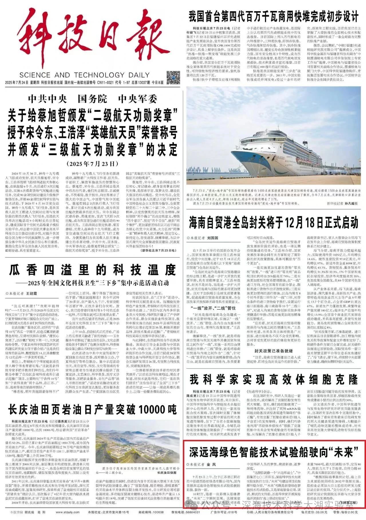 《科技日?qǐng)?bào)》頭版